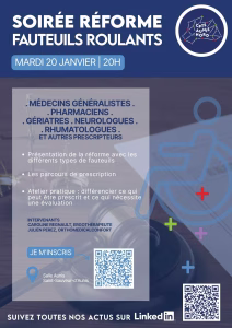 Mardi 20 janvier 2026 à 20h, la CPTS Aunis Nord organise une soirée sur la réforme fauteuils roulants :